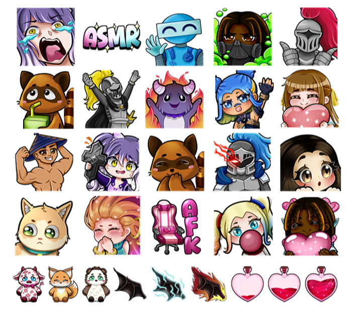 | Number | Emotes/Badges | Recolored Badges | Channel Points | Stickers |