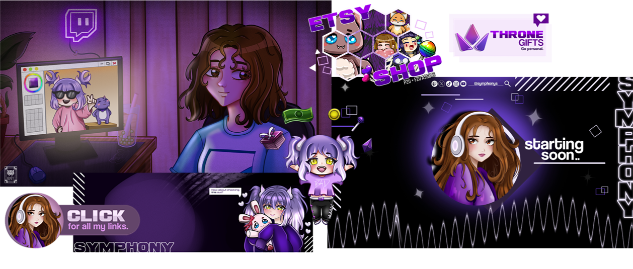 Heya!I'm Ony and I'm a self-taught freelancer Illustrator and Designer. I love creating streamer graphics and cute art! I've been drawing since 2020 and recently began digging into animation.Here you have everything you need to know regarding my commissions. Please read my T.O.S. before commissioning me.Questions? Hit me up on discord @ symphonys !COMMISSION STATUS: OPEN